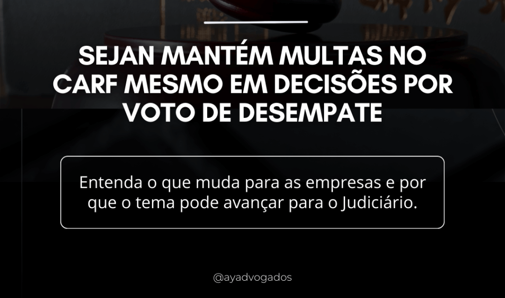 Sejan mantém multas nas decisões do Carf por voto de desempate: entenda o impacto para as empresas A Câmara de Promoção de Segurança Jurídica no Ambiente de Negócios (Sejan), órgão ligado à Advocacia-Geral da União (AGU), decidiu manter o entendimento da Receita Federal e da Procuradoria-Geral da Fazenda Nacional (PGFN)